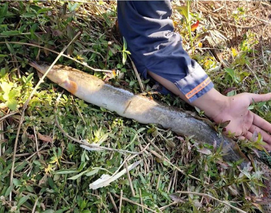 当地老乡说,一位村民捉到一条大刺鳅,比小孩手臂还粗,很少见也很难得,被人一千元当场买走。