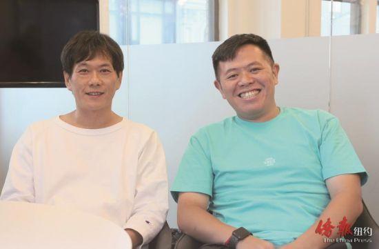 图为林明谦(左)和曾国骏在纽约接受采访。(管黎明摄)