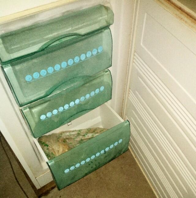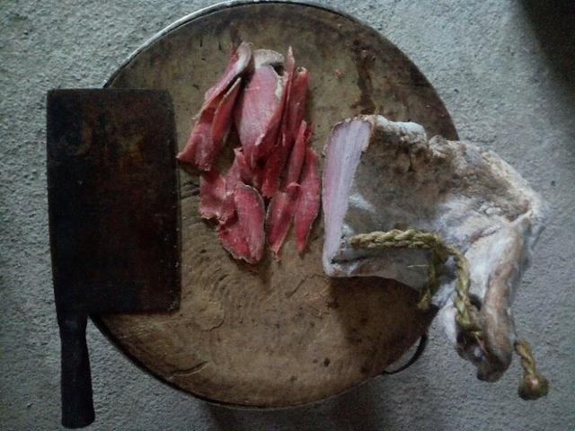 每次想吃的时候,就取出来放入菜板一片一片地切,吃多少切多少,剩下的又挂着或包好贮存在冰箱或冰柜里,很方便。
