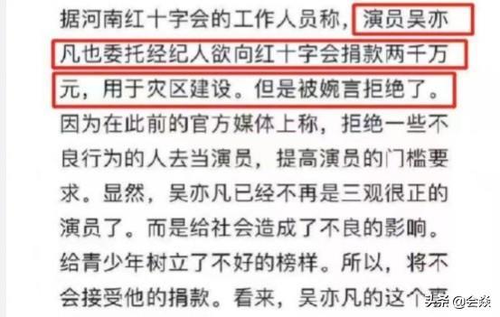吴亦凡捐款2000万遭拒?河南红十字会澄清,原来吴亦凡捐100万
