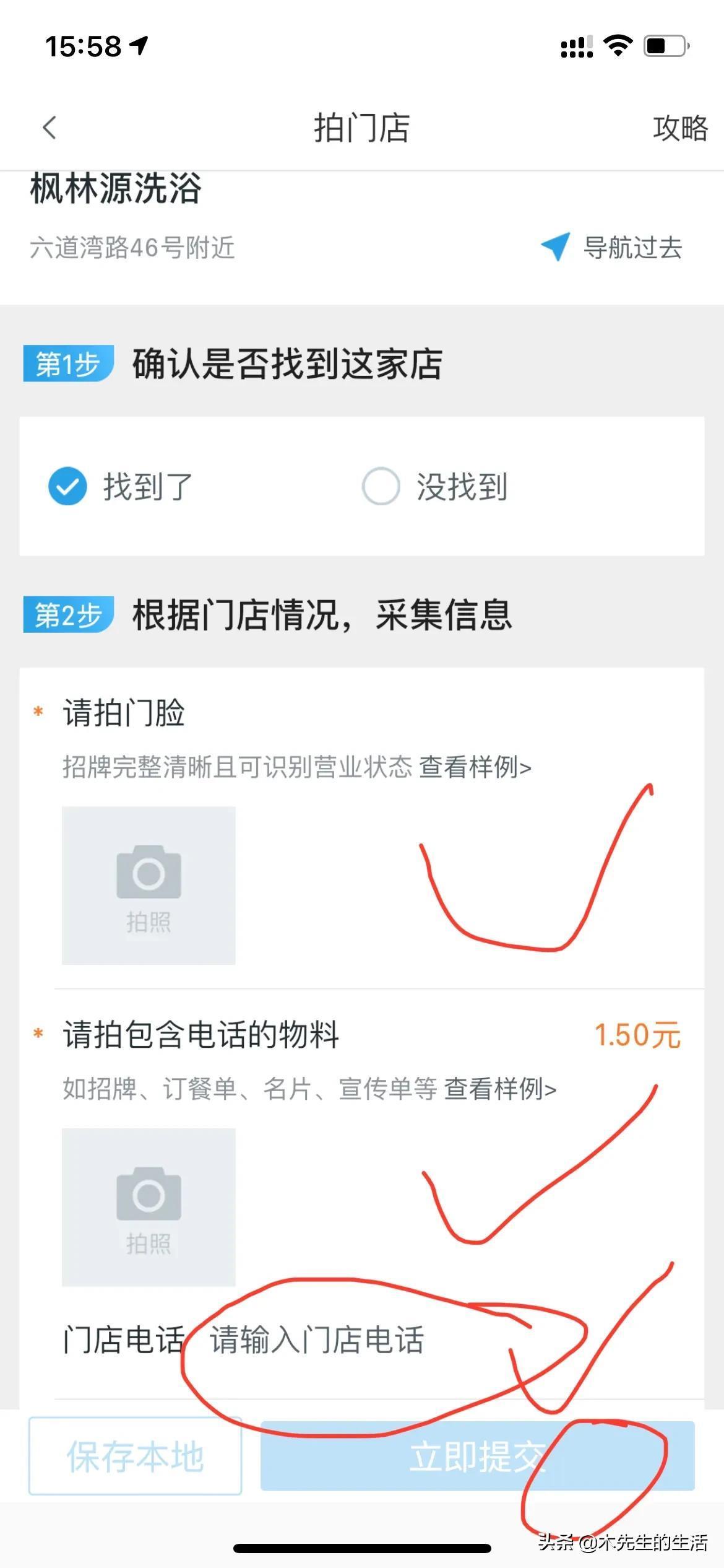 一般的话都是拍店家的门头与电话,电话不是很好找,如果没有明显的电话信息就需要拍者去店里问老板要了(这个要电话是需要一点技巧的)。