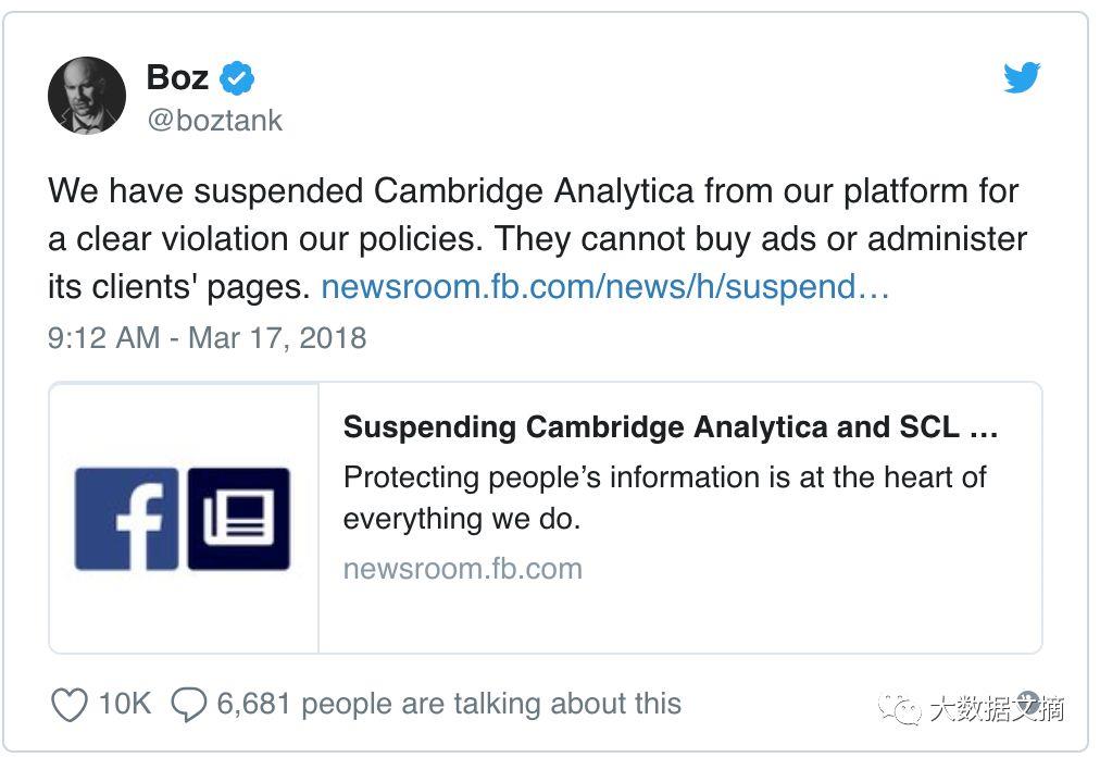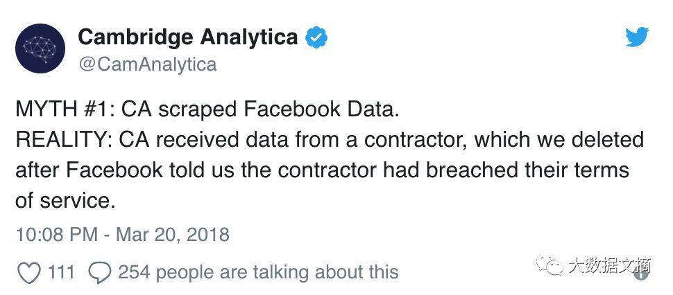 在3月20日的一条推特中,剑桥分析回应了相关指控