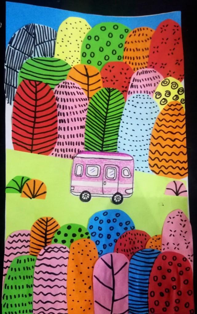 6.最后画辆可爱的汽车,剪下并粘贴在画面中,一幅简单漂亮的作品就完成了。