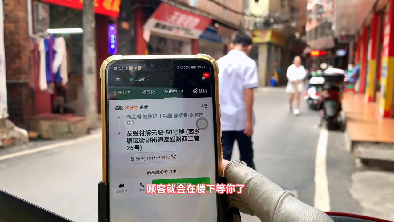 出发了~到达目的地了,这个顾客在楼下等我,我直接交付给他。交付餐品给顾客后,我们一定要点击“我已送达”,否则不算完成订单。