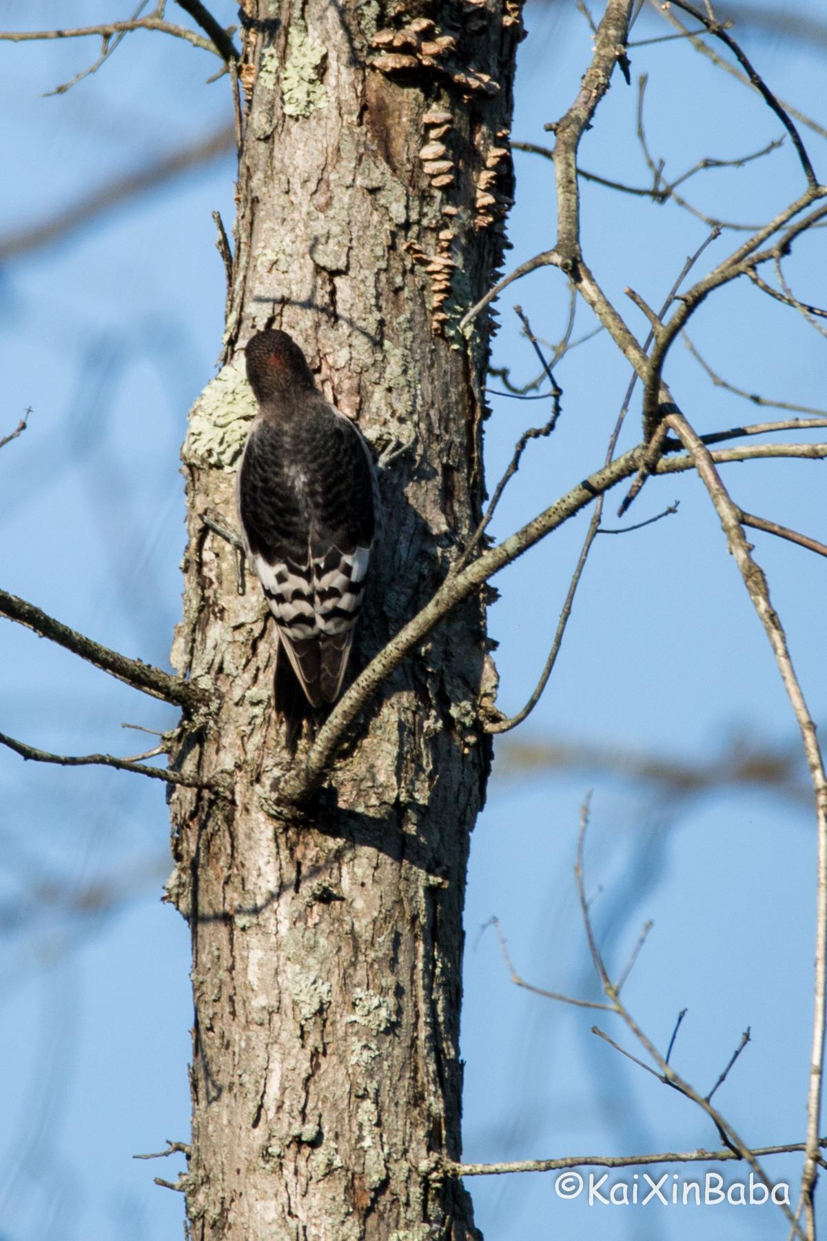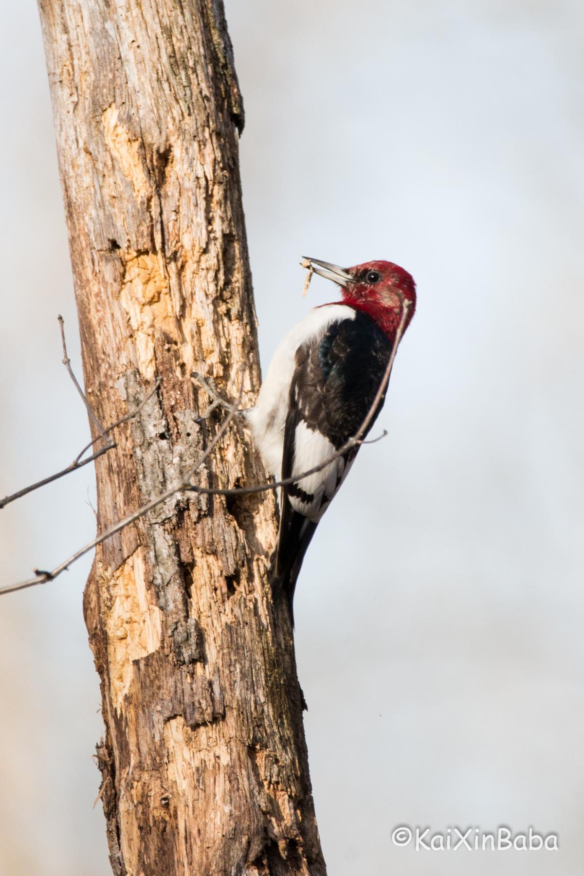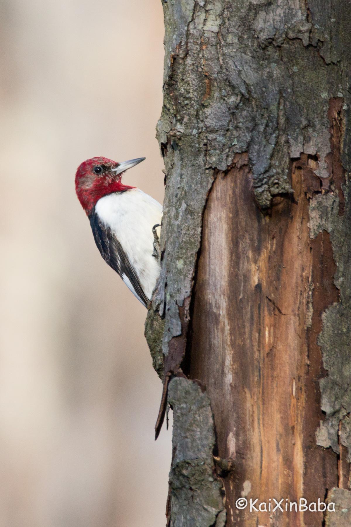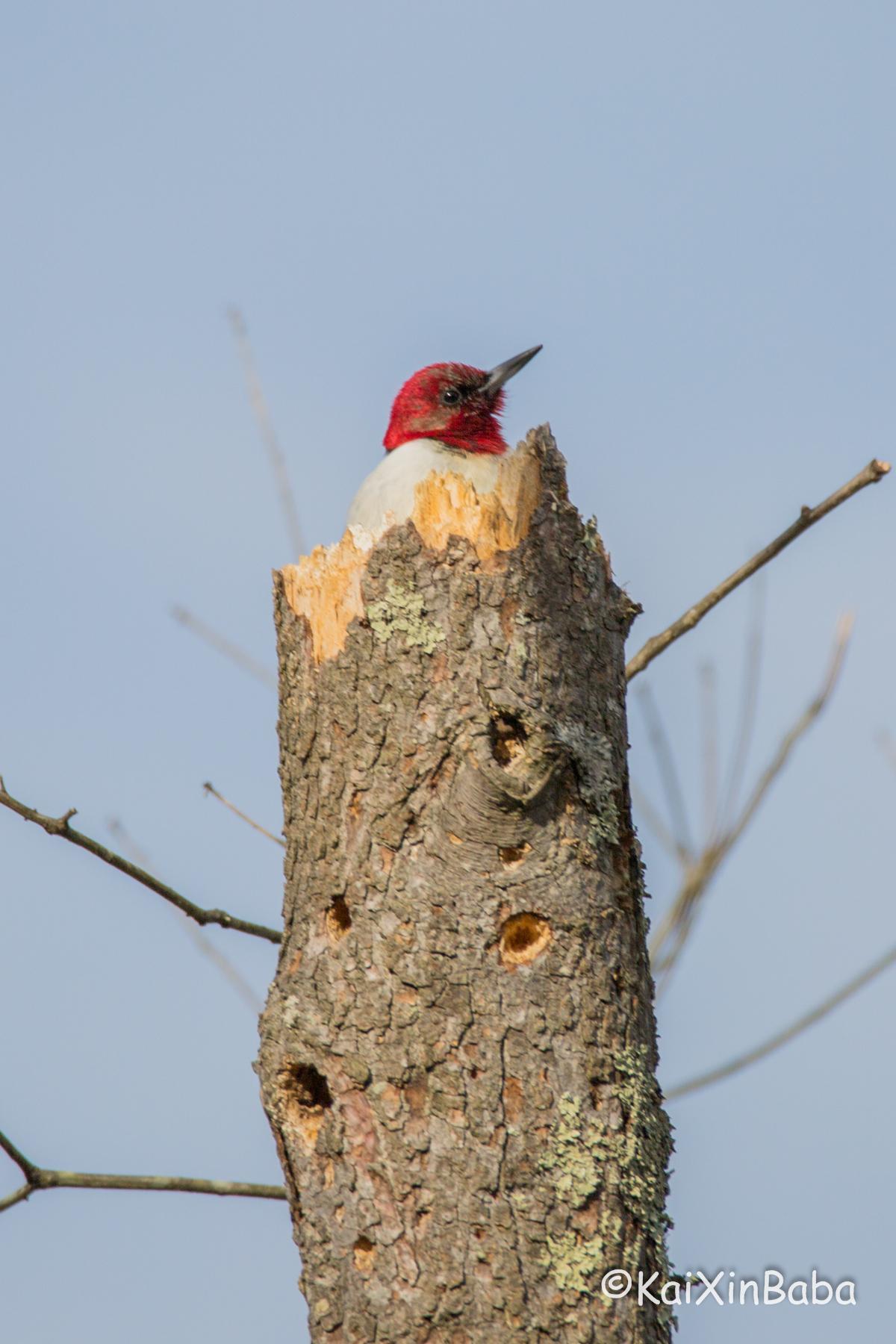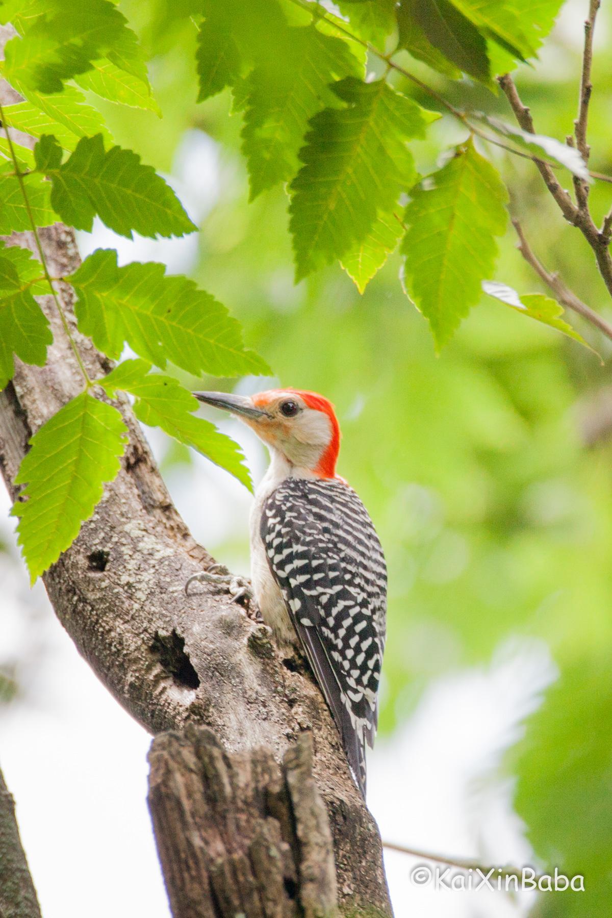 其实,红腹啄木鸟(Red-bellied Woodpecker)的头部也是红色的,只是与红头啄木鸟比起来,就太小巫见大巫了。