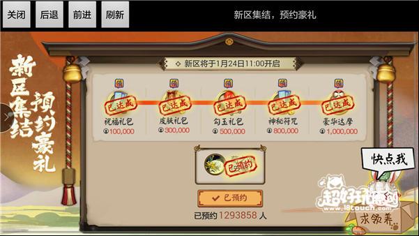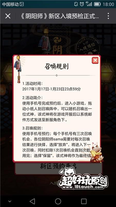 使用手机预约新区后,完成指定小游戏,即可获得一只式神。