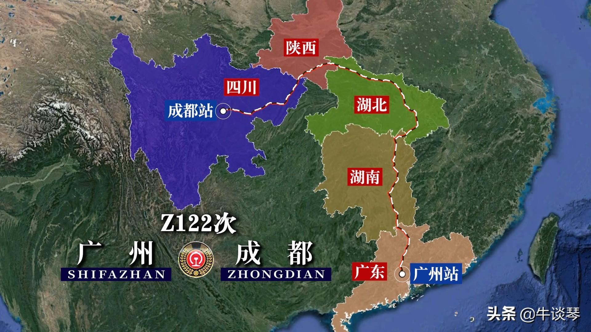 Z122次列车运行线路图:广州开往四川成都,全程2414公里