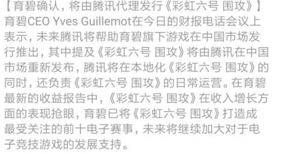 彩虹六号国服代理权终于确定!腾讯又代理了新游戏!