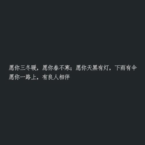 愿你三冬暖,愿你春不寒;愿你天黑有灯,下雨有伞;愿你一路上,有良人相伴。