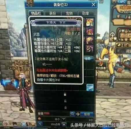 这张卡片名字叫卡洛夫卡片,是一张紫卡,强大的属性让玩家看到就想膜拜。这张卡片是附魔在武器上的,光属性强化+6,暗属性强化+6,2次升级以后能达到12,光属性伤害附加4%,暗属性伤害附加4%,两次升级以后能达到8%,最主要的是紫卡,现在活动送的紫卡可以百分百升级成功。唯一的缺点就是无法交易。如果这张卡片能交易的话,价钱不是一般人能买的起的。有人说这张卡片是p过的,小编在图鉴中查阅了一下,确实没有这张卡片的存在。这是卡片出现了bug还是图鉴还没来得及更新就不得而知了。