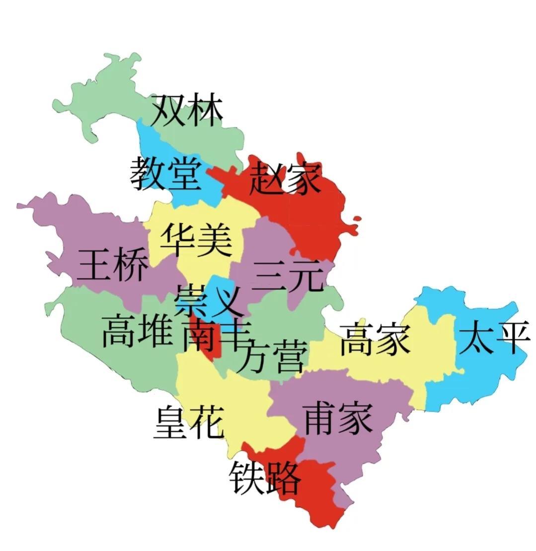 三元、赵家、双林、教堂、华美、王桥、高堆、皇花、铁路、甫家、太平、高家、方营(涉农社区)(依次为当地人俗称的一大队到十三大队)