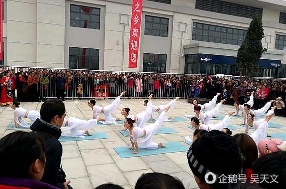 图为12月6日宁强瑜伽馆的美女们正在宁强南站广场上表演瑜伽舞蹈《三生三世十里桃花》。