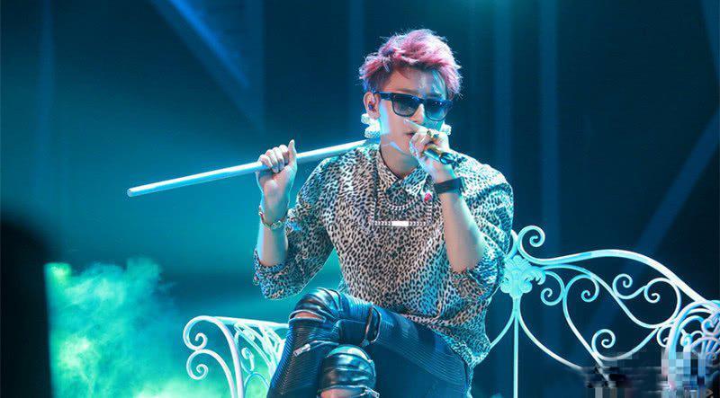 比如这个,在韬韬演唱会的时候,粉色的头发配上豹纹衬衫,手握铁棍,带着墨镜。帅的不要不要,感觉都无人敢惹他