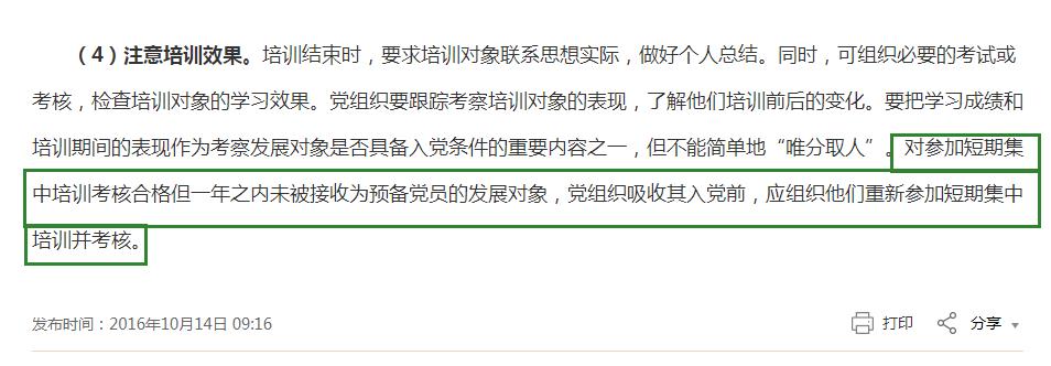 一方面:《中国共产党发展党员工作细则》第十七条明确规定,基层党委或县级党委组织部门应当对发展对象进行短期集中培训。培训时间一般不少于三天(或不少于二十四个学时)。未经培训的(小编加上一句:培训考核不合格的),除个别特殊情况外,不能发展入党。这就说明了,集中培训的结业证书有多重要。