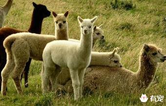 羊驼:偶蹄目、骆驼科,外形有点像绵羊也有点像骆驼,一般栖息于海拔4000米的高原。每群十余只或数十只,由1只健壮的雄驼率领。以高山棘刺植物为食。