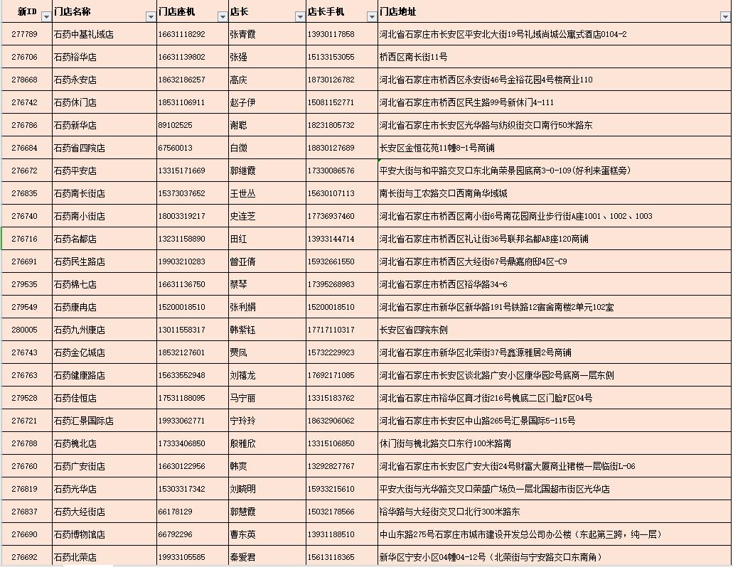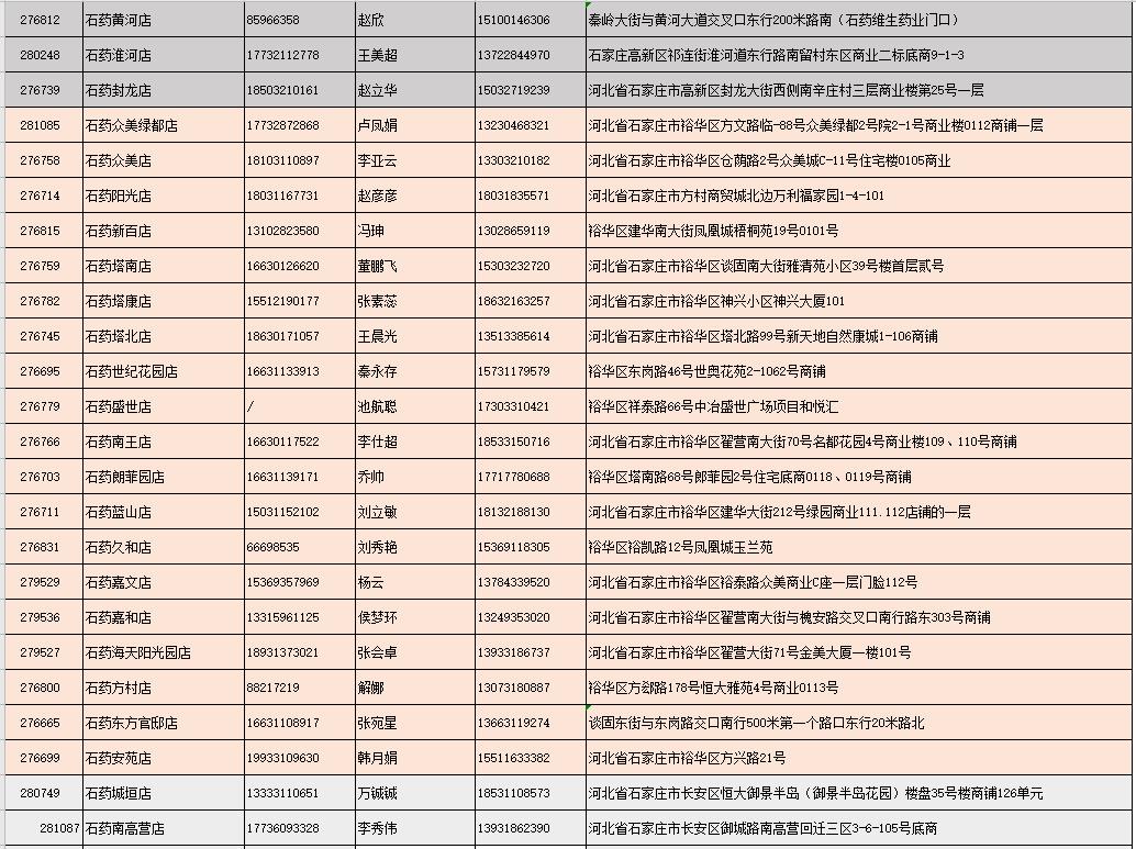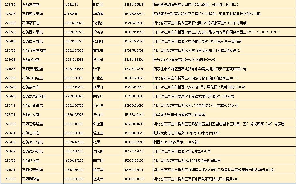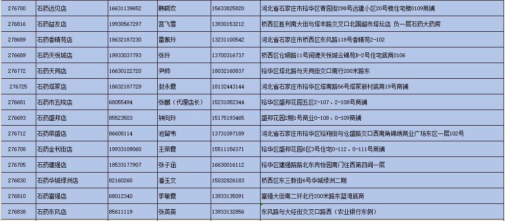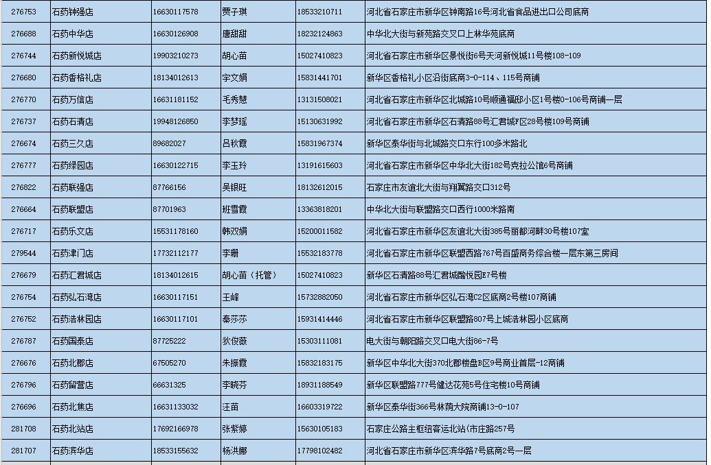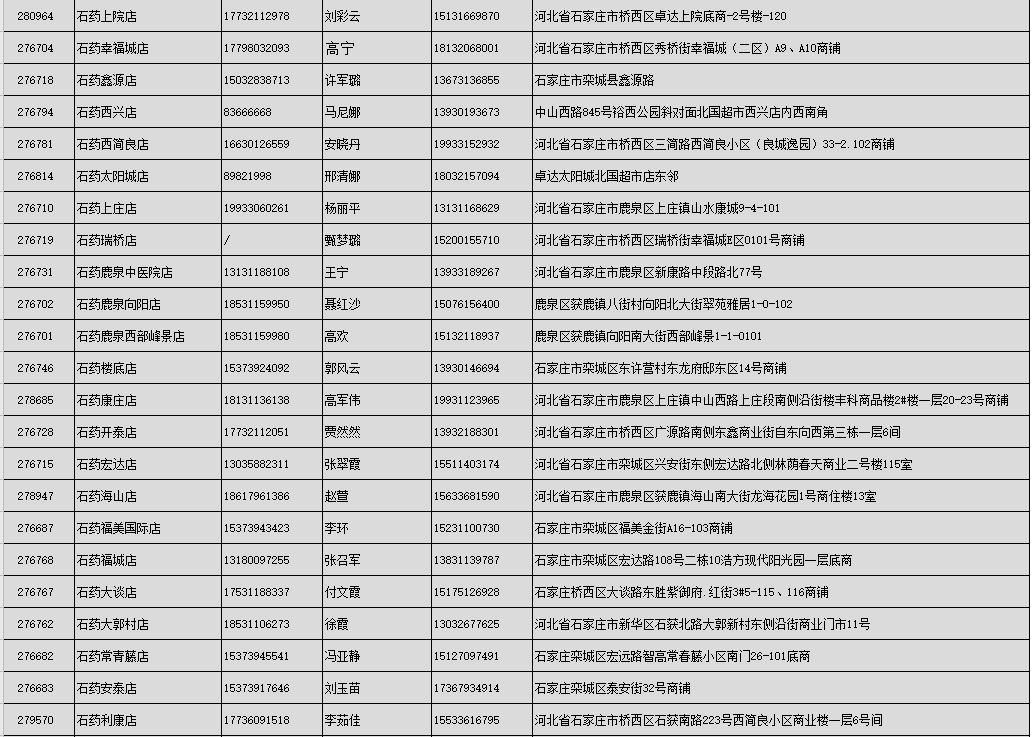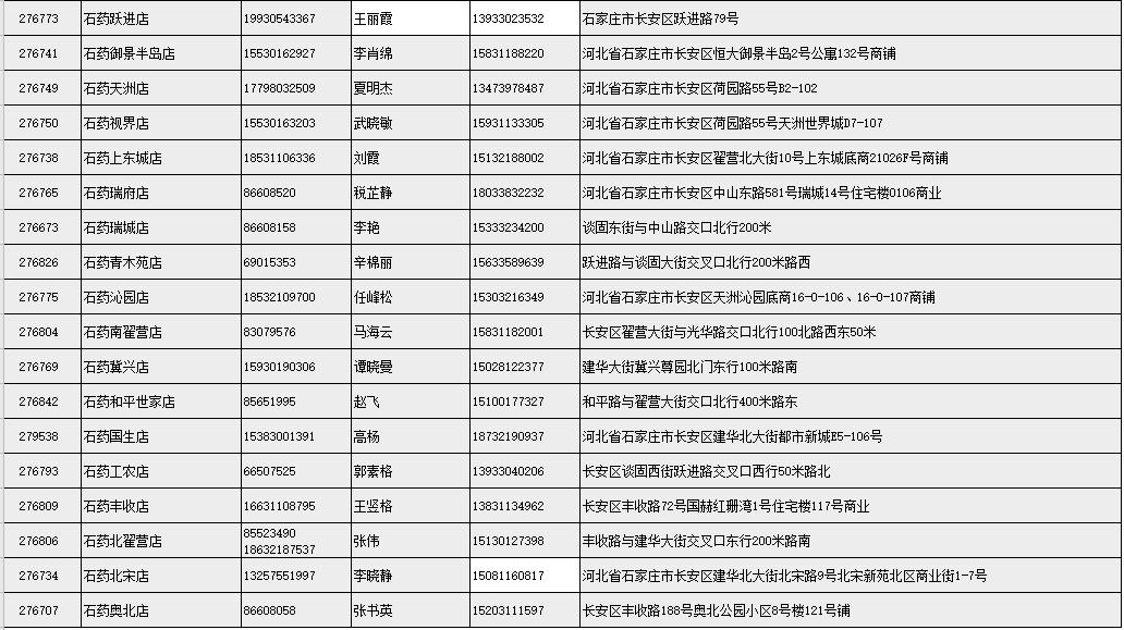 附:石药大药房部分营业门店地址及联系方式
