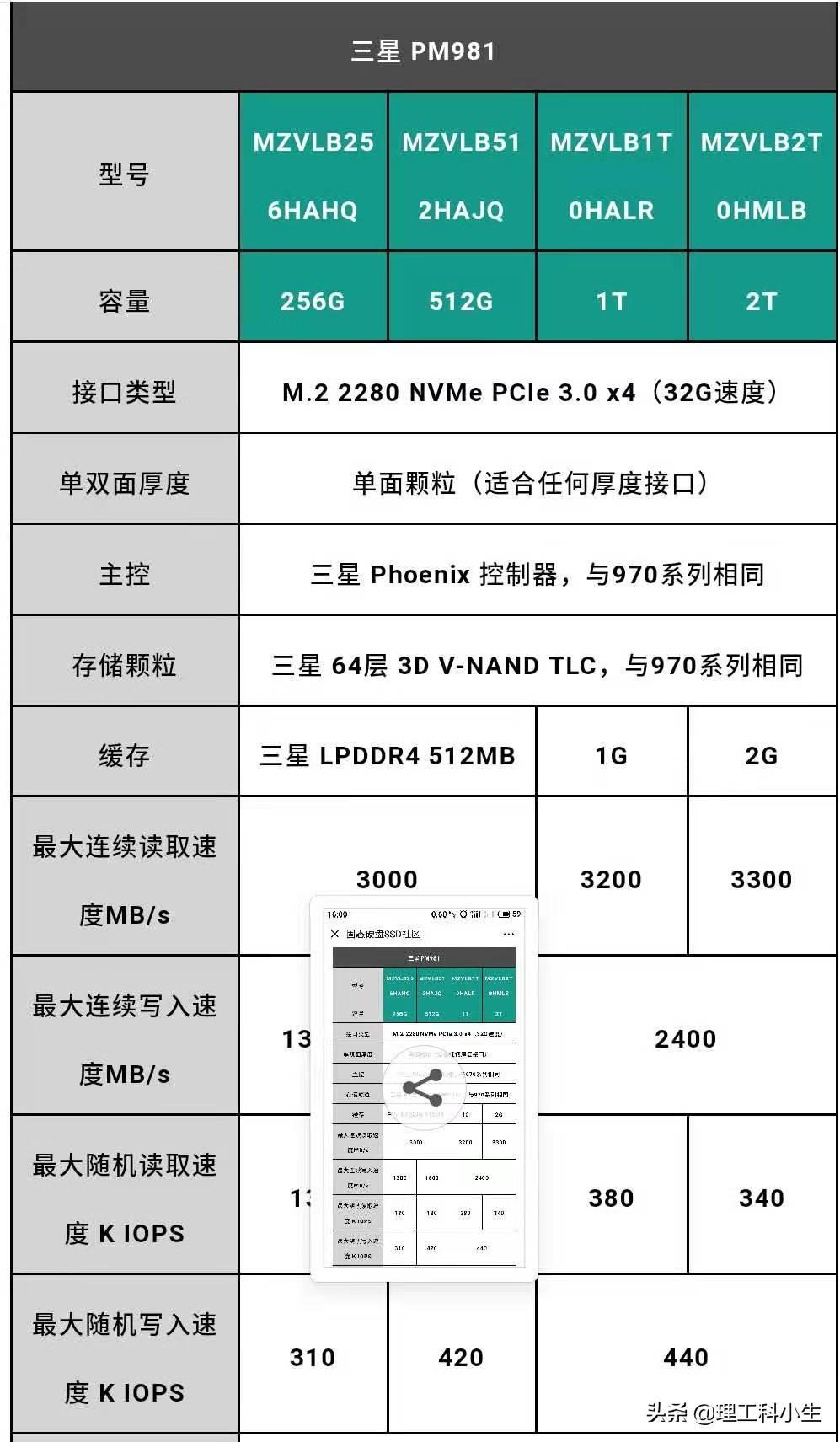 PM981是目前三星微电子系列里最快的产品,之前是SM系列,但现在SM系列并没有更新。PM系列的缺点是不支持三星魔术师软件,也不支持RAPID功能。