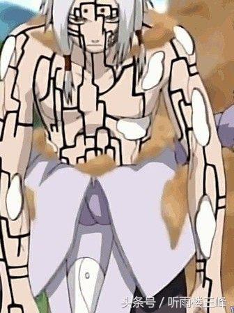 当地之咒印暴走到状态二的时候。君麻吕发生形态变化,身体变成类似剑龙的怪物.这也完全符合他的血继限界——尸骨脉。长出来的尾巴也是地之咒印“地”的体现。
