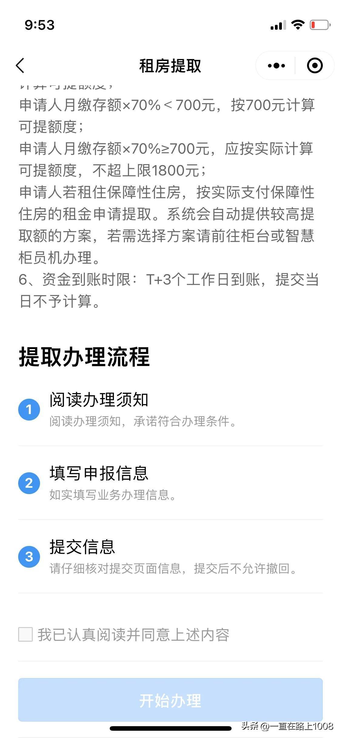 在下面选择租房提取,进去后如实填写123的信息,并且勾选同意后点击开始办理。