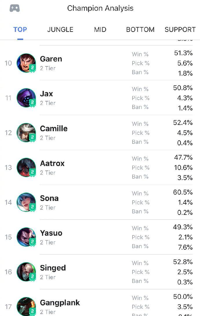 不过根据韩服的胜率榜来看,琴女上单的胜率在奶妈中位列第一。可见虽然之前索拉卡一直被不少玩家吹捧上单很强,但实际上琴女才是奶妈中的新上单一姐。