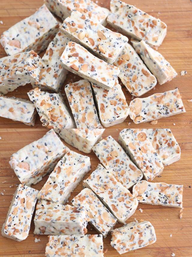 牛轧糖的做法其实非常简单,即使是厨房小白也可以轻松完成的,今天就来跟我一起做花生黑芝麻牛轧糖吧!