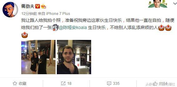 “我让路人给我拍个照,筹备祝我阁下这家伙生日欢愉,功效他一向在自拍,随意率性给我们拍了一张,陈娅安生日欢愉,不给别人添乱添贫困的人”,蒋劲夫微博中幸福的写道。还称号陈娅安为阿谁家伙,字里行间都是洒狗粮的滋味啊。