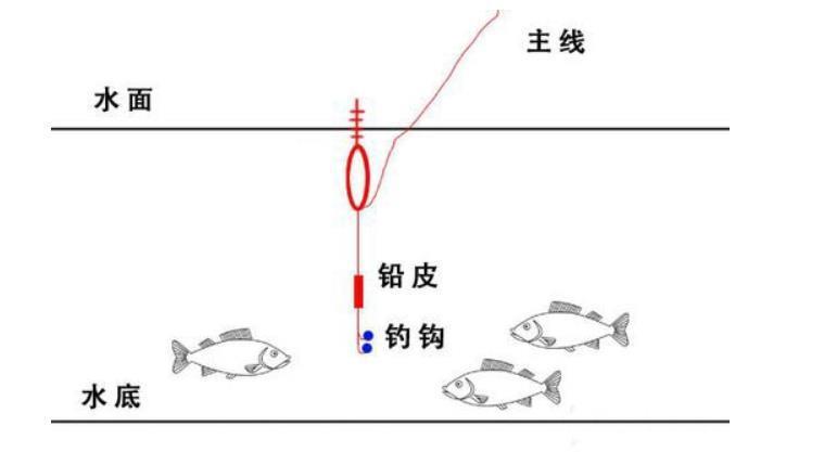 第一步:放好铅皮,不要动,然后把浮漂和鱼钩之间线调短一下,直接扔到水里,如下图