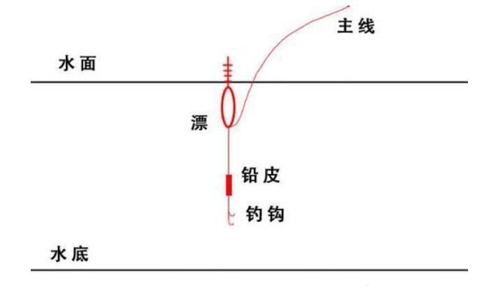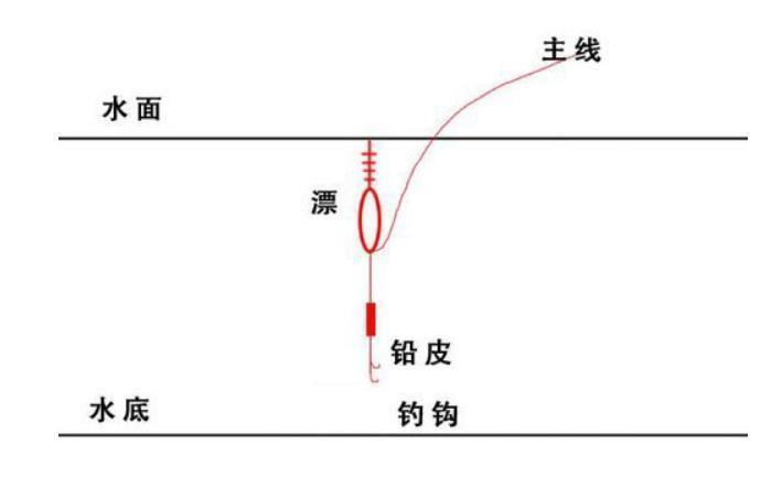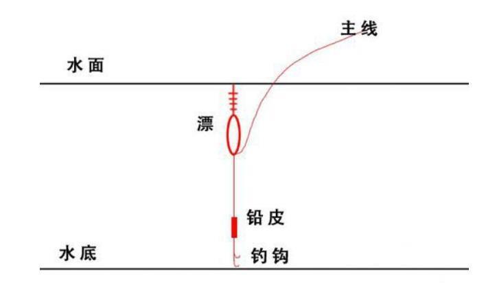 第三步:再移动浮漂,让浮漂和铅皮的线缩短,发现浮漂会又沉到水里了,如下图