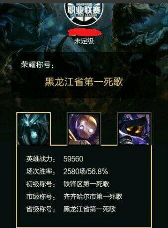 这位小伙伴就比较厉害了,黑龙江省第一死歌,从图上我们可以看到,只有该账号该大区最强战斗力的三个英雄的排行榜,也许你比较厉害,英雄池够深,其他英雄查不到那也是没办法的了。