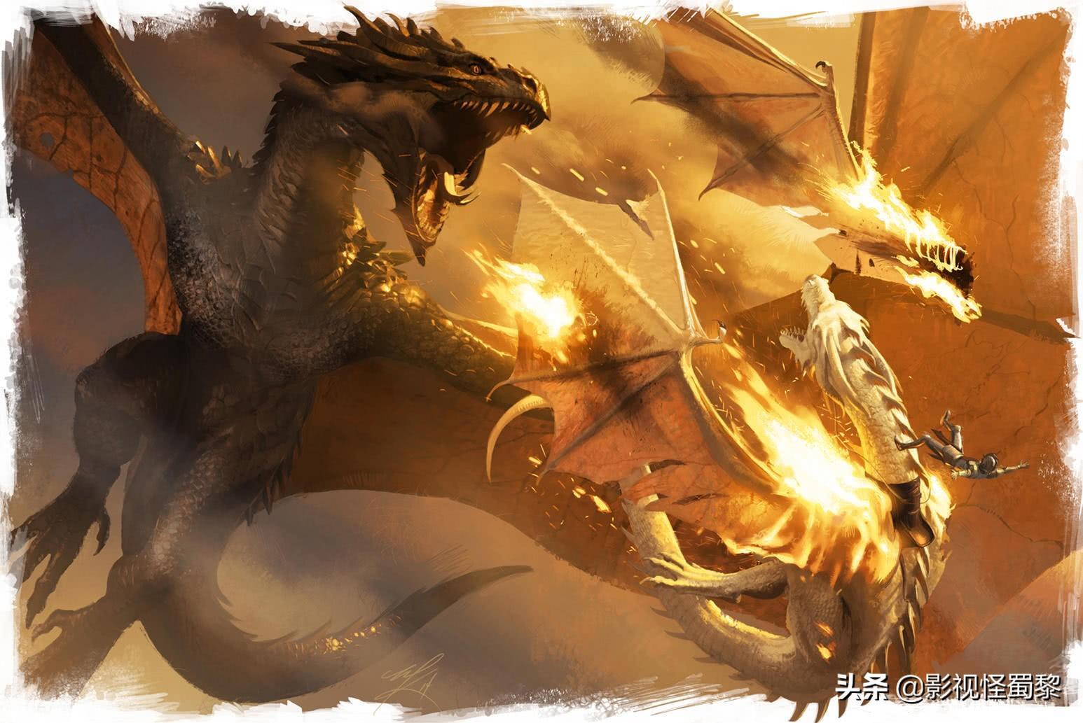 龙在《权力的游戏》第一季首次出现,当时丹妮莉丝·坦格利安得到了三个石化的龙蛋作为礼物。在这一季结束时,龙奇迹般的破壳而出,龙这种生物又重新回到了维斯特洛大陆。从那时起,这三条龙(卓耿、雷哥和韦塞里昂)就成了丹妮莉丝故事中不可或缺的部分。这三条喷火的龙也让龙母一路摧枯拉朽横扫战场,直到遇到夜王失去了韦塞里昂龙。