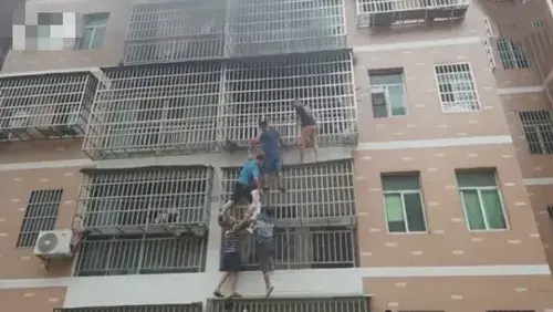 了不起!高楼失火,6名男子搭“人梯”救出被困女童