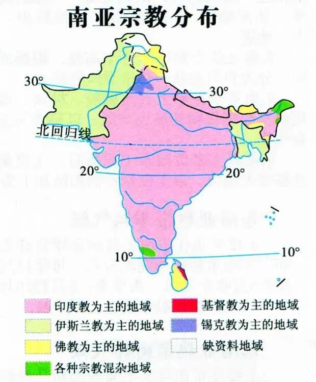 ②印度河流域是人类古代文明的中心之一,是佛教和印度教的发源地。但目前南亚只有少数居民信仰佛教,他们主要集中在斯里兰卡,而印度和尼泊尔的大多数居民信奉印度教,巴基斯坦和孟加拉国的多数居民信奉伊斯兰教。