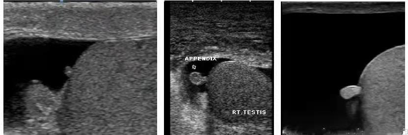 儿童急腹症:睾丸附件扭转的超声图像
