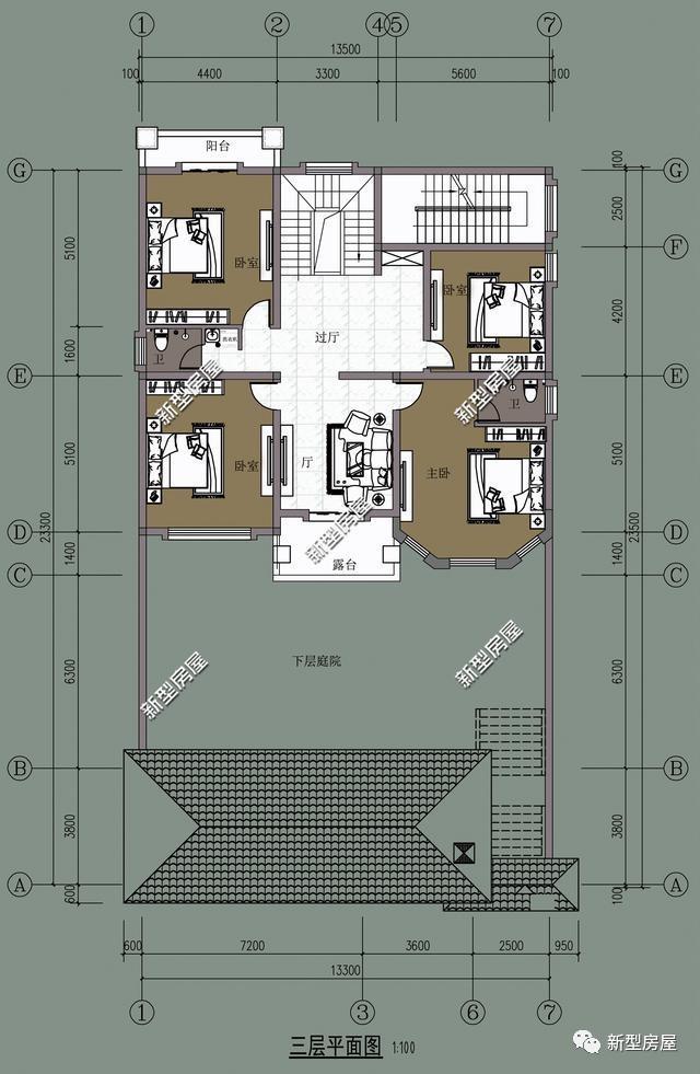 三层基本建筑情况:4卧室、1客厅、2卫生间。