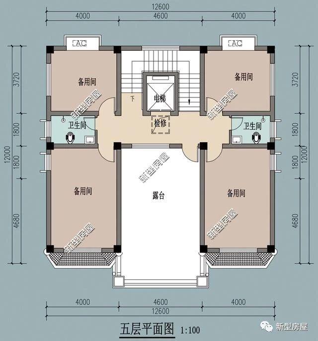 五层基本建筑情况:1露台、4备用间、2卫生间。