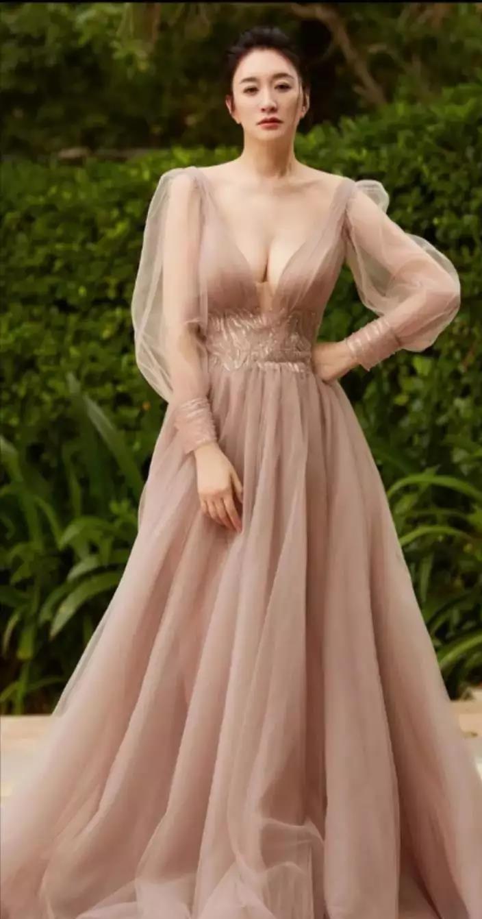 李小冉低胸纱裙写真美照上线,身材优越风韵犹存,女人味十足