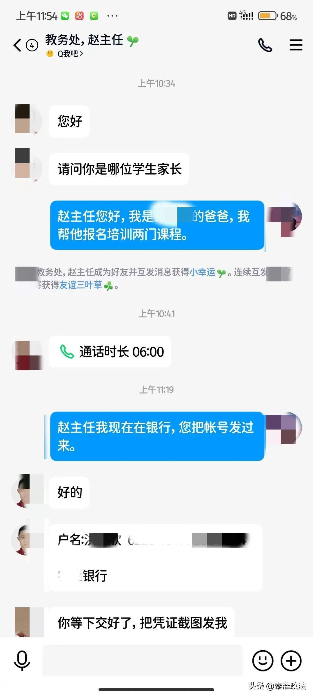 3、涉及钱款事项,一定要提高警惕,在转账之前和子女、学校取得联系,确认真实性。