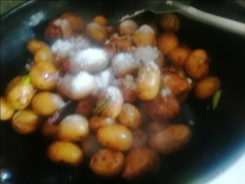 食材:小土豆、盐、香叶、大料、小辣椒、白糖、味精、生抽、老抽、葱姜蒜、食用油、五花肉、水淀粉。