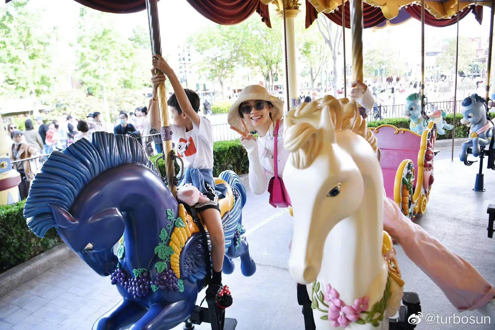 前不久,孙俪还po出过和老公邓超带着两个孩子去游玩的温馨照片。当时孙俪穿着粉色背带裤美回20岁,和儿子等等一起做旋转木马时,母子俩乍眼一看,还以为是姐弟呢。