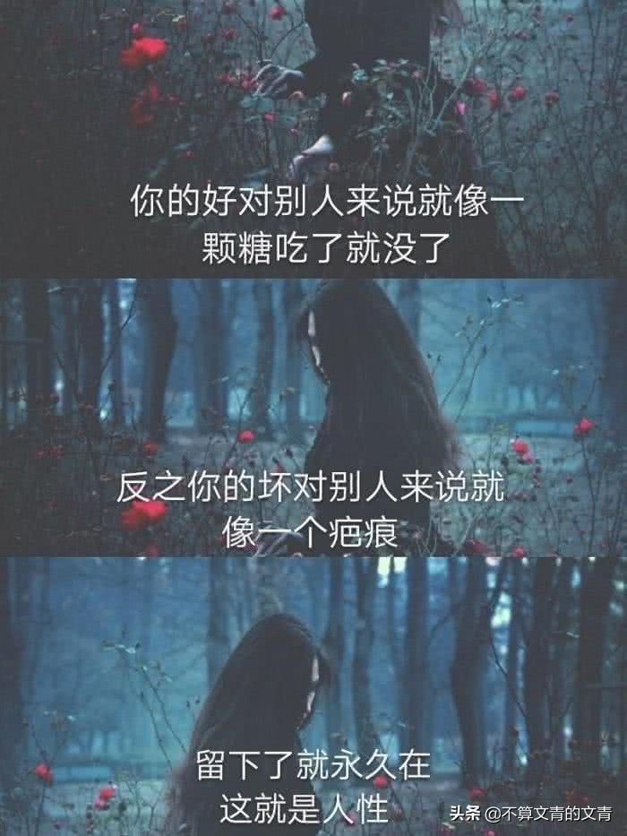 图2:有的爱情还是那种爱而不得的,你喜欢他,可是她并不喜欢你,于是乎你对他所有的付出只是到最后感动了自己,然而他却无动于衷,在生活中也是如此,你默默地对一个人好,然而他们却只知道索取,从来不付出,反而因为你做错一件事前,他却抓住不放,忘了你以前的好,这就是人性!