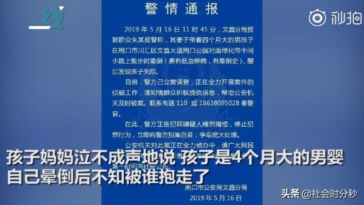 5月16日,河南周口一位妈妈带着4个月大的男婴外出散步,中途她因为低血糖而晕倒,醒来后,婴儿车里的孩子却不见了。孩子的去向牵动着全国人民的心,当地警方和公益组织也在全力寻找。