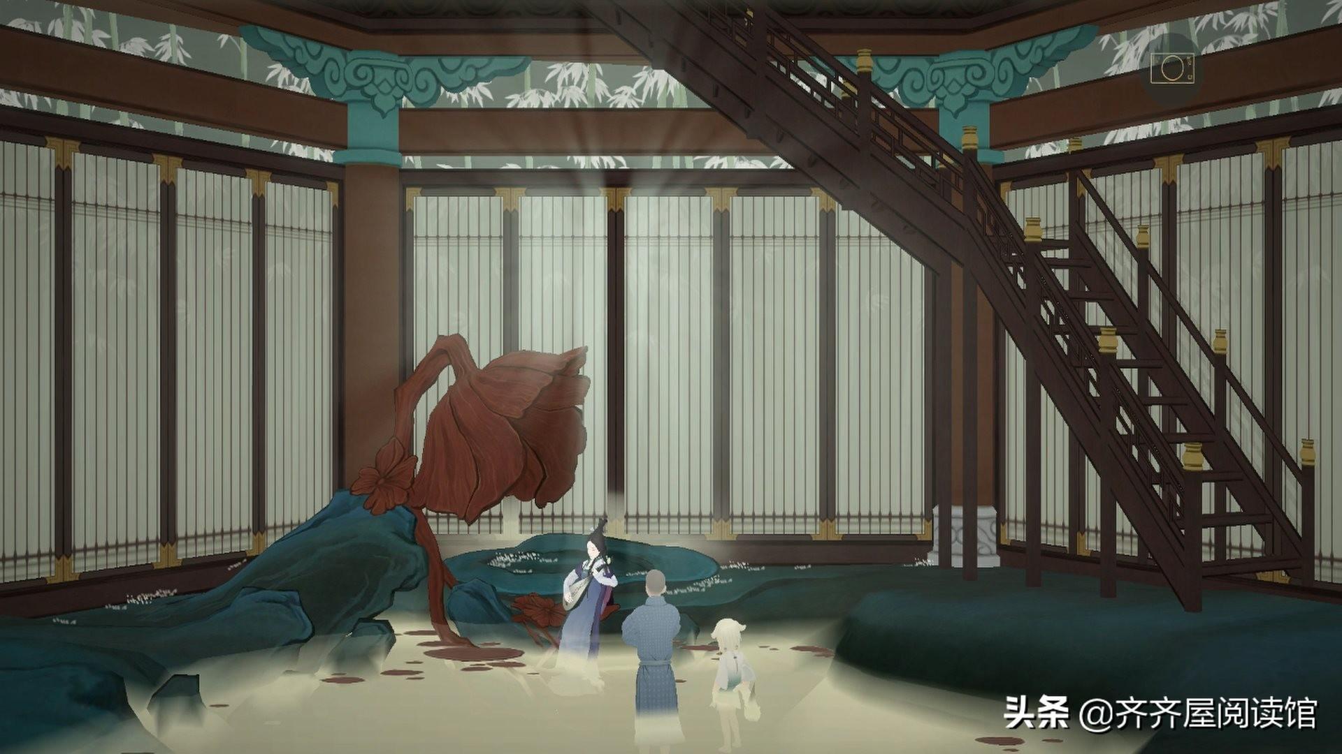 故事到此,妙山先生的画作太真也就算完成了。自己没有解决的问题,一修和尚完美的解决了太真的上色问题。当然,想走出画卷,也只有通过那座断掉的石桥,所以,桥必须修好,没有了白色的精怪,只有用五蕴笔了。