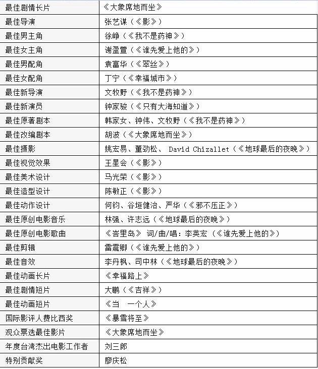 以下是第55届金马奖全部获奖名单: