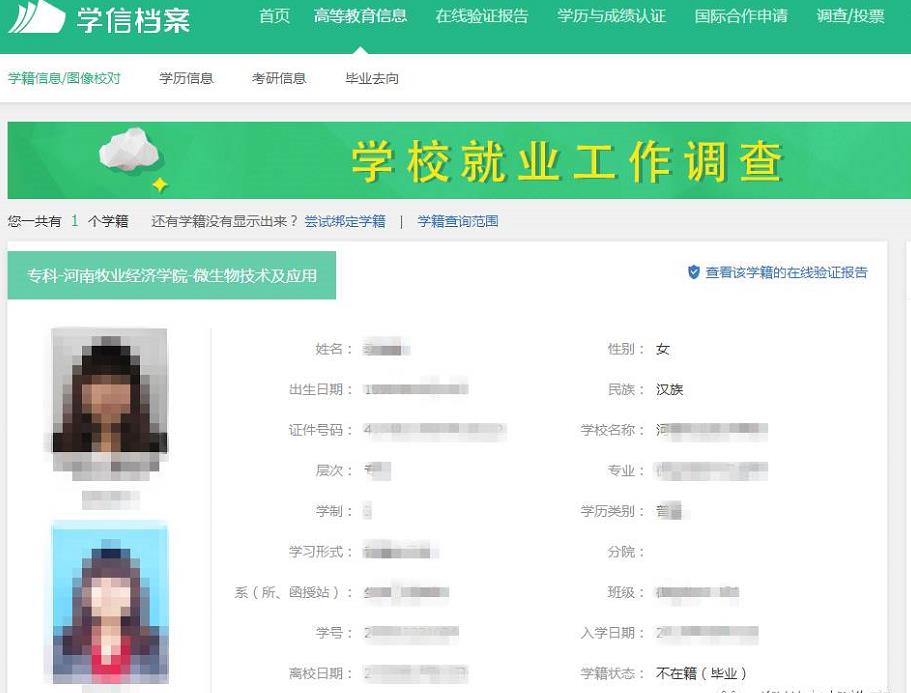就可以看到学籍、学历信息了