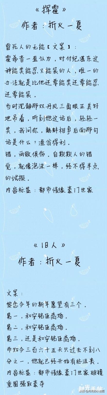 今天给大家推荐折火一夏的作品,折火一夏的作品文风比较成熟,很值得大家阅读的。
