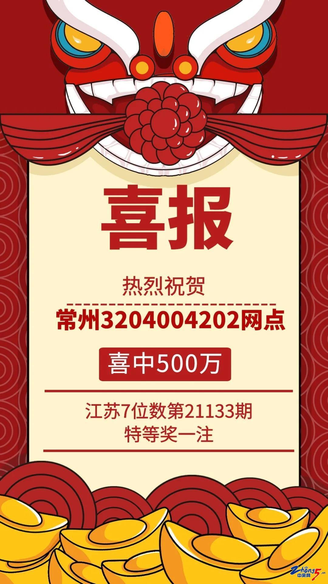 江苏7位数昨日开奖 常州市钟楼区购彩者喜中500万