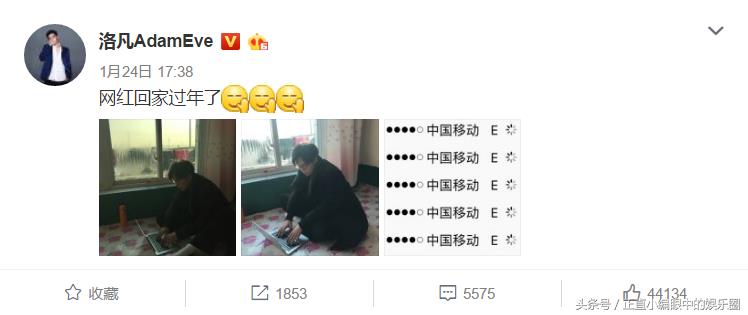 洛凡AdamEve昨天发了一条微博:“网红回家过年了”,三张配图让许多人感慨万分,感同身受。