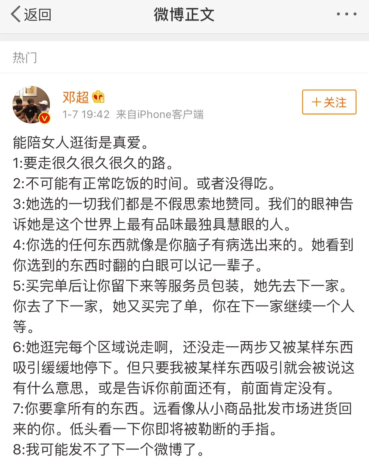 活跃的像高仿号的邓超,今天晚上又因为连发8大条吐槽陪孙俪逛街上了热搜,具体事情是这样画风真实到让人不敢相信。