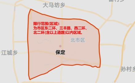 保定限行区域:东二环、三丰路、西二环、北二环 (含以上道路)以内区域。