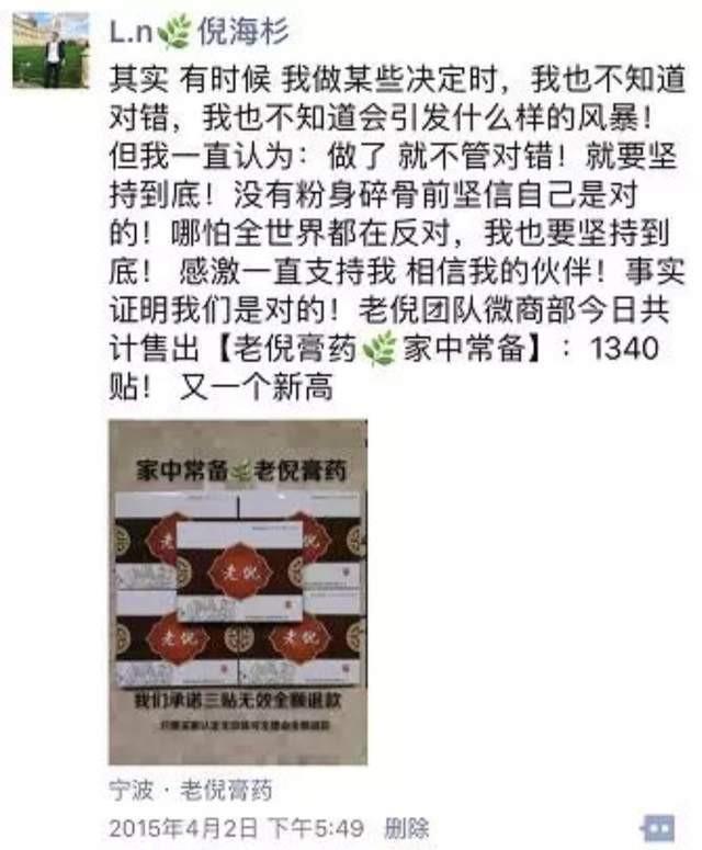 因此2013之后,淘宝店铺营业额逐年下降,最终,倪海杉无奈地关停自己的店铺,退出了淘宝市场。经历过两次惨败的倪海杉痛定思痛,最终他看中了微商发展的机会,他决定开始做微商。